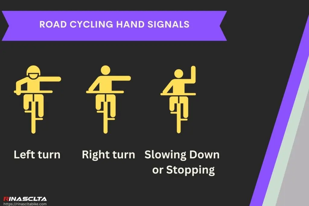 Road cycling hand signals include indicating a left turn, a right turn, slowing down or stopping, and pointing out hazards on the road. These road cycling hand signals are essential for communicating intentions to other road users, thereby enhancing safety.