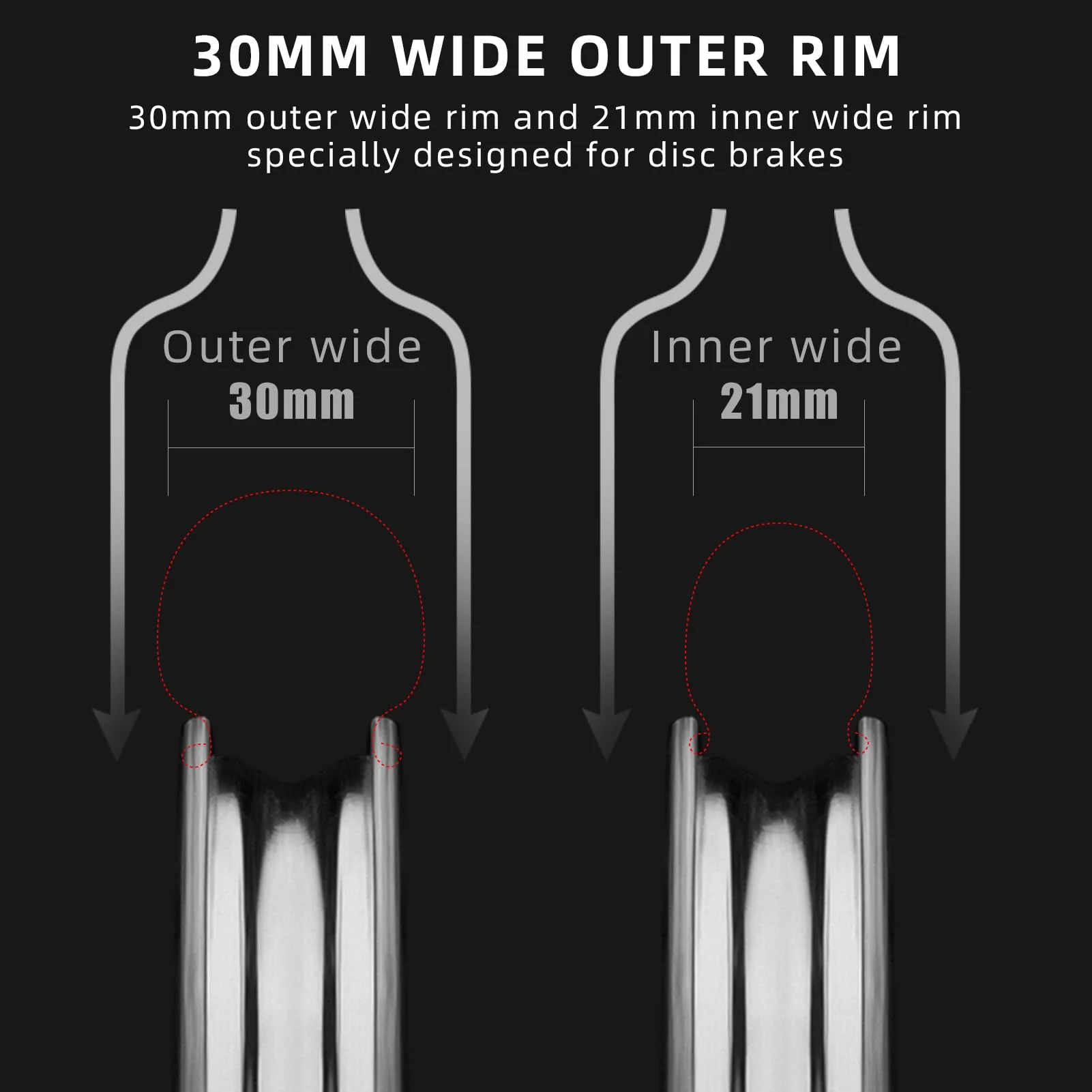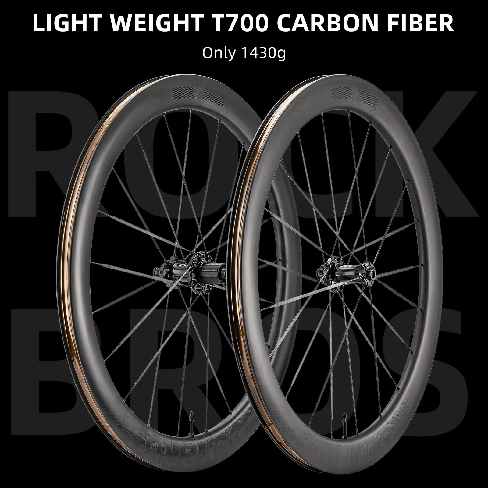 Elevate your cycling performance with the ROCKBROS T700 Carbon Fiber 700C 55mm Disc Brake Wheelset. Crafted from premium T700 carbon fiber, this wheelset offers a perfect balance of strength and lightness, weighing approximately 1.45kg. The 55mm rim depth, combined with a 30mm outer and 21mm inner width, optimizes aerodynamics, reducing air resistance and enhancing stability, especially when paired with 28c–32c tires.